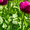 Diese Mohnsorte ist deutlich grösser und kräftiger als der in Deutschland wachsende Klatschmohn. Davon kann man neben dem Feld einige rote Exemplare sehen. Dabei ist die hiesige Sorte von einem sehr viel intensiveren Rot. Obwohl der Handel mit Opium strengstens kontrolliert wird, benötigt das Feld weder Zaun noch permanente Bewachung. Um das Opium zu ernten, muß erst die unreife Fruchtkapsel angeritzt werden. Dadurch läuft eine weiße Flüssigkeit heraus, die an der Luft oxydiert und zu einem braunen Klumpen trocknet. Dieser Klumpen kann am nächsten Tag geerntet werden. Ein Wächter muß also nur nach angeritzten Kapseln suchen, um dann auf denjenigen zu warten, der das Rohopium ernten will.