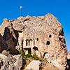 Pancarlık KiliseBlick in die Landschaft Kappadokiens von dem Tuffsteinkegel aus, der die Pancarlık Kilise beherbergt. enthält Detailbilder