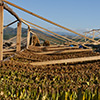 frische Tabakblätter, zum Trocknen aufgehängt